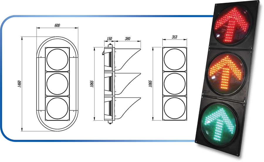 鼎光 JD300-3-DA LED滿屏機動車信號燈采用LED發(fā)光方式,符合國標《道路交通信號燈》(GB14887-2011)的要求, 并且通過了公安部交通安全產(chǎn)品質(zhì)量監(jiān)督檢測中心的檢測。交叉口信號燈按車道功能設(shè)置,每組信號燈為具有可顯示紅、黃、 綠三色箭頭燈和全屏燈功能的燈具,安裝附于車道下游的懸臂桿或立柱式燈桿上,燈桿基礎(chǔ)必須安裝地線,接地電阻小于或等 于10歐姆。